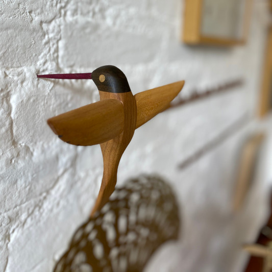 Preço normal R$ 185,00Preço normalPreço unitário / porR$ 185,00Preço promocional R$ 185,00Beija-flor feito à mão em madeira de lei. Tamanho Aprox.: Altura: 11 cm x profundidade: 9 cm x Comprimento: 18 cm Os processos e técnicas de produção artesanal conferem singularidade a cada produto. Assim as peças apresentam características únicas, fazendo com que cada objeto adquirido se transforme em uma obra de arte exclusiva. * para fixar o beija flor na parede é necessario usar uma bucha número 06, fixando o apenas pelo bico. * não acompanha bucha. As fotos dos produtos podem ter variações de cor comparadas ao produto original. Código: beija01 -