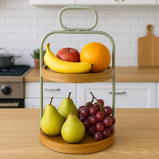 Preço normal R$ 699,00Preço normalPreço unitário / porR$ 699,00Preço promocional R$ 699,00Leve charme e funcionalidade para sua cozinha ou área gourmet com essa fruteira de dois andares. Com estrutura metálica na cor verde e bandejas de madeira natural, ela é perfeita para organizar frutas, pães ou outros itens decorativos, deixando seu ambiente ainda mais elegante e moderno. Material: Estrutura em metal com pintura eletrostática verde e bandejas em madeira Medidas: Altura Total: 44cm | Diâmetro das bandejas: 28cm e 24cm | Altura entre os andares: 20 cm (aproximadamente) Design moderno: Alça superior que facilita o transporte e visual leve para composição decorativa Uso versátil: Ideal para bancadas, mesas ou aparadores As fotos dos produtos podem ter pequenas variações de cor comparadas ao produto original. Código: 107598 -