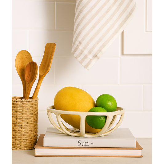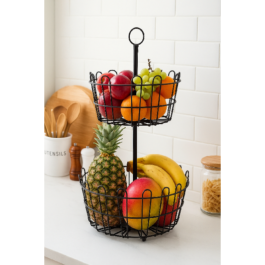 Preço normal R$ 699,00Preço normalPreço unitário / porR$ 699,00Preço promocional R$ 699,00Leve charme e funcionalidade para sua cozinha ou área gourmet com essa fruteira de dois andares. Com estrutura metálica na cor verde e bandejas de madeira natural, ela é perfeita para organizar frutas, pães ou outros itens decorativos, deixando seu ambiente ainda mais elegante e moderno. Material: Estrutura em metal com pintura eletrostática verde e bandejas em madeira Medidas: Altura Total: 44cm | Diâmetro das bandejas: 28cm e 24cm | Altura entre os andares: 20 cm (aproximadamente) Design moderno: Alça superior que facilita o transporte e visual leve para composição decorativa Uso versátil: Ideal para bancadas, mesas ou aparadores As fotos dos produtos podem ter pequenas variações de cor comparadas ao produto original. Código: 107598 -