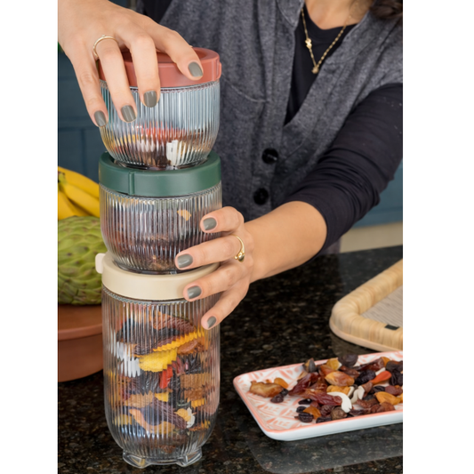Preço normal R$ 49,00Preço normalPreço unitário / porR$ 49,00Preço promocional R$ 49,00Pote Boro Canelado com Tampa de Bambu 500ml O Pote Boro Canelado é perfeito para armazenar e organizar com charme e praticidade. Produzido em vidro de borossilicato, é resistente e leve, ideal para guardar balas, doces, castanhas, biscoitos ou pequenos itens do dia a dia. Seu design canelado traz um toque delicado e elegante, enquanto a tampa em bambu garante vedação e um acabamento natural que combina com diferentes estilos de decoração. Capacidade: 500mlMedidas: A: 11cm x Ø: 10,5cm As fotos dos produtos podem ter pequenas variações de cor comparadas ao produto original. Código: 20790 -
