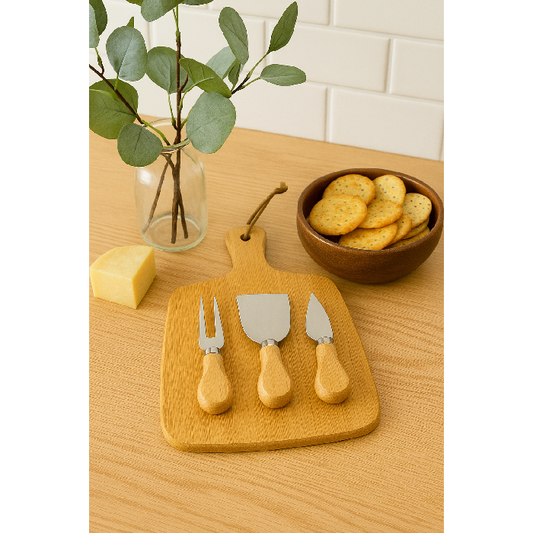 Preço normal R$ 119,00Preço normalPreço unitário / porR$ 145,00Preço promocional R$ 119,00Jogo de Facas para Queijo com Tábua de Madeira Acácia – Elegância e Funcionalidade na sua Mesa Leve sofisticação e praticidade para os seus momentos de degustação com este incrível Jogo de Facas para Queijo com Tábua de Madeira Acácia. Perfeito para servir com estilo, ele combina design elegante com materiais de alta qualidade, garantindo durabilidade e charme para qualquer ocasião. O que acompanha? 1 Faca para queijos macios (11x3 cm)1 Garfo para segurar os queijos (12x3x1,5 cm)1 Espátula para queijos cremosos (12x4x1,5 cm)1 Tábua de madeira acácia (27x20x1,5 cm) Destaques do Produto Material Premium – Aço inoxidável resistente e madeira acácia de alta qualidade, trazendo um toque rústico e sofisticado à sua mesa.Design Ergonômico – Pegada confortável e corte preciso para diferentes tipos de queijo.Ideal para Presentear – Uma excelente opção de presente para amantes de queijos e para quem gosta de receber bem. Aprecie seus queijos favoritos com muito mais elegância e praticidade. Garanta já o seu! As fotos dos produtos podem ter pequenas variações de cor comparadas ao produto original. Código: 29405Promoção