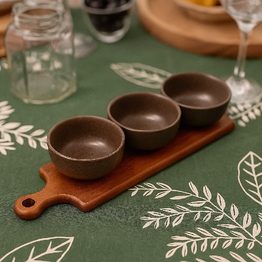 Preço normal R$ 115,00Preço normalPreço unitário / porR$ 149,00Preço promocional R$ 115,00Conjunto petisqueira design moderno e sofisticado para servir petiscos com estilo. Ideal para complementar a mesa posta, oferecendo praticidade e elegância em cada detalhe, tornando qualquer ocasião mais especial. Material: Cerâmica e madeira Cor: Marrom Dimensão Aproximadas (cm): 9.5C M X 9.5CM X 4.7CM | Bandeja: 35.5CM X 9.5CM X 1.2CM As fotos dos produtos podem ter pequenas variações de cor comparadas ao produto original. Código: BP0003Esgotado -