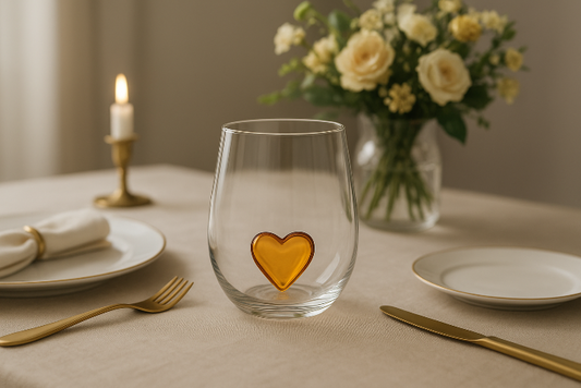 Copo de Vidro com Detalhe em Coração Âmbar