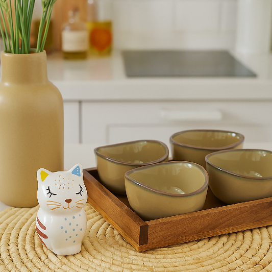 Preço normal R$ 229,00Preço normalPreço unitário / porR$ 229,00Preço promocional R$ 229,00Conjunto com 4 potes de cerâmica e bandeja de madeira. Ideal para servir petiscos, molhos e aperitivos com praticidade e charme. Material: Cerâmica e madeira Cor: Bege claro com leve acabamento brilhante e bordas em tom levemente acinzentado/amarronzado Dimensão Aproximadas (cm): 10,5cm x 11cm x 6 | Bandeja: 24cm x 24cm x 3 As fotos dos produtos podem ter pequenas variações de cor comparadas ao produto original. Código: UN0009 -