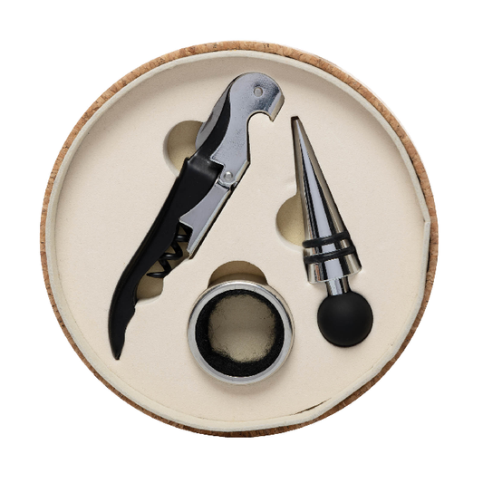 Preço normal R$ 86,00Preço normalPreço unitário / porR$ 86,00Preço promocional R$ 86,00Conjunto Bordeaux e elegante e prático, o conjunto inclui saca-rolhas, bico dosador e anel corta-gotas. Acompanha estojo redondo com acabamento de cortiça com acabamento sofisticado.Material: Aço inox Contém: 3 peças. As fotos dos produtos podem ter pequenas variações de cor comparadas ao produto original. Código: 220949 -
