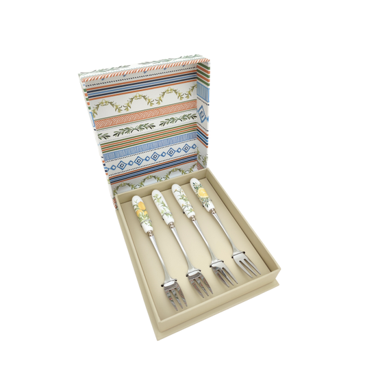 Preço normal R$ 115,00Preço normalPreço unitário / porR$ 115,00Preço promocional R$ 115,00Jogo de Talheres Garfo Sobremesa Limone – 4 PeçasDelicadeza e charme em cada detalhe! O jogo Limone vem com 4 garfos de sobremesa em uma linda caixa decorativa, perfeita para presentear com elegância e bom gosto. As fotos dos produtos podem ter pequenas variações de cor comparadas ao produto original. Código: 31805 -