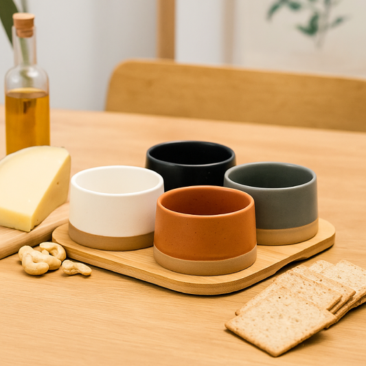 Preço normal R$ 129,00Preço normalPreço unitário / porR$ 129,00Preço promocional R$ 129,00Esta petisqueira escolha perfeita para servir seus petiscos favoritos de forma elegante e sofisticada. Com 4 bowls de cerâmica e uma bandeja de bambu, você pode organizar diferentes tipos de petiscos para seus convidados. Material: Cerâmica e bambu Medidas Aproximadas: C: 22 cm x L: 22 cm x A: 5,5 cm As fotos dos produtos podem ter pequenas variações de cor comparadas ao produto original. As fotos dos produtos podem ter pequenas variações de cor comparadas ao produto original. Código: 5463 -