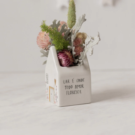 Preço normal R$ 235,00Preço normalPreço unitário / porR$ 235,00Preço promocional R$ 235,00Este vasinho transmite afetividade com toda magia e encanto.O produto possui furo na parte superior da peça para que possa ser colocado na parede e também na parte do fundo que permite receber plantinha direto no vaso!Frase Lateral: lar é AconchegoDimensões Aproximadas: A:9,5cm x Ø: 6cm A peça não acompanha arranjo floral Dimensões: L:8cm A:12cm P:8cm Desenho exclusivo Casa Verdinha Peça pintada a mão Aplicação de ouro (atenção aos cuidados especiais com essa peça) O vaso conta com: ♥ Furo na parte superior, permitindo que seja pendurado na parede ♥ Abertura no fundo na parte de baixo para o plantio direto da sua plantinha favorita As fotos dos produtos podem ter pequenas variações de cor comparadas ao produto original. Código: VC-015 -