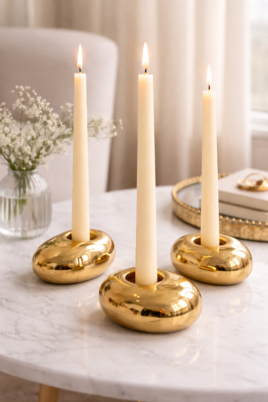 Preço normal R$ 32,00Preço normalPreço unitário / porR$ 32,00Preço promocional R$ 32,00Porta-vela decorativo de cerâmica douradaPorta-vela decorativo produzido de cerâmica de alta qualidade, com acabamento brilhoso e tonalidade dourada. Seu formato orgânico e design contemporâneo valorizam a peça, refletindo a luz de forma elegante e criando um ambiente acolhedor e sofisticado. Ideal para uso em salas, quartos, aparadores ou mesas, podendo ser utilizado individualmente ou em composição com outros porta-velas decorativos. Material: Cerâmica Tamanho aproximado: 3x7,5x6cm As fotos dos produtos podem ter pequenas variações de cor comparadas ao produto original. Código: 19956-C -