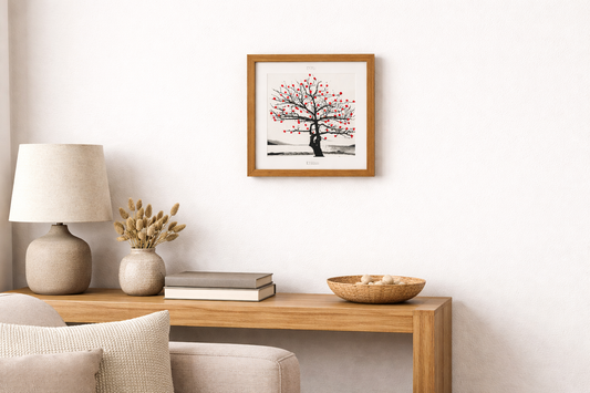 Preço normal R$ 635,00Preço normalPreço unitário / porR$ 635,00Preço promocional R$ 635,00Essa obra emoldurada apresenta a imagem de uma árvore em preto e branco, cuja copa é delicadamente transformada por bordados à mão em tom vermelho, criando pontos de cor que evocam flores, frutos e renovação. O contraste entre a fotografia e o bordado manual traz textura, movimento e profundidade à composição. A moldura em madeira clara acrescenta um acabamento elegante e acolhedor, valorizando a obra e destacando seus detalhes com leveza. A união entre o rigor da imagem e a suavidade do bordado cria um diálogo sensível entre natureza, tempo e gesto artístico. Com estética contemporânea e poética, esta peça é ideal para ambientes que buscam arte autoral, equilíbrio visual e um toque de cor sutil, tornando-se um destaque delicado e expressivo no espaço. Tamanho aproximado:22x22 Artista: Patricia Saraiva Observação: Cada obra é produzida artesanalmente, o que torna cada peça única. Pequenas variações e leves imperfeições fazem parte do processo artístico e do material. As fotos dos produtos podem ter pequenas variações de cor comparadas ao produto original. Código:2222Esgotado -