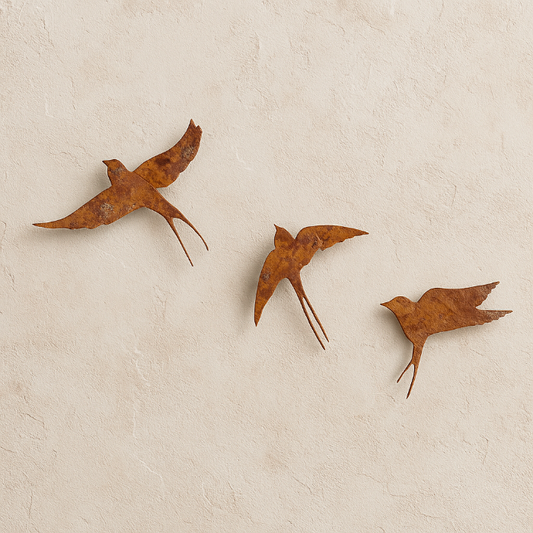 Preço normal R$ 745,00Preço normalPreço unitário / porR$ 745,00Preço promocional R$ 745,00Conjunto com 3 andorinhas decorativas em metal com acabamento enferrujado. Perfeitas para compor paredes com charme rústico e artesanal. Ideais para ambientes internos ou externos cobertos, trazendo leveza e movimento à decoração. Tamanho aproximado: 26cm x 20cm | 20cm x 18,5cm | 17,5cm x 16,5cm Material: ferro envelhecido. Possui gancho para pendurar * As peças de ferro são envelhecidas com o tempo, tornando cada uma única. As fotos dos produtos podem ter pequenas variações de cor comparadas ao produto original. Código: MCA-1500 -
