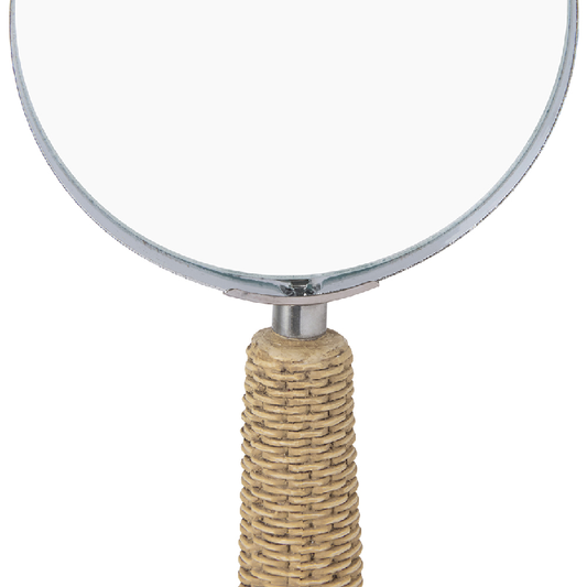 Preço normal R$ 135,00Preço normalPreço unitário / porR$ 135,00Preço promocional R$ 135,00Com design elegante, ela combina a leveza do rattan natural no cabo com o charme do aro metálico prateado, criando uma peça sofisticada e cheia de personalidade. Além de ser um objeto útil para leitura e observação de detalhes, a lupa também se destaca como elemento decorativo — perfeita para compor mesas de centro, escritórios, aparadores e estantes com um toque de autenticidade e sofisticação natural. Características: Material: Vidro, metal e rattan natural Cor: Natural com acabamento prateado Estilo: Decorativo e funcional Medidas aproximadas: Altura total: 22 cm | Diâmetro da lente: 10 cm | Espessura do cabo: 3 cm As fotos dos produtos podem ter pequenas variações de cor comparadas ao produto original. Código: 21521 -