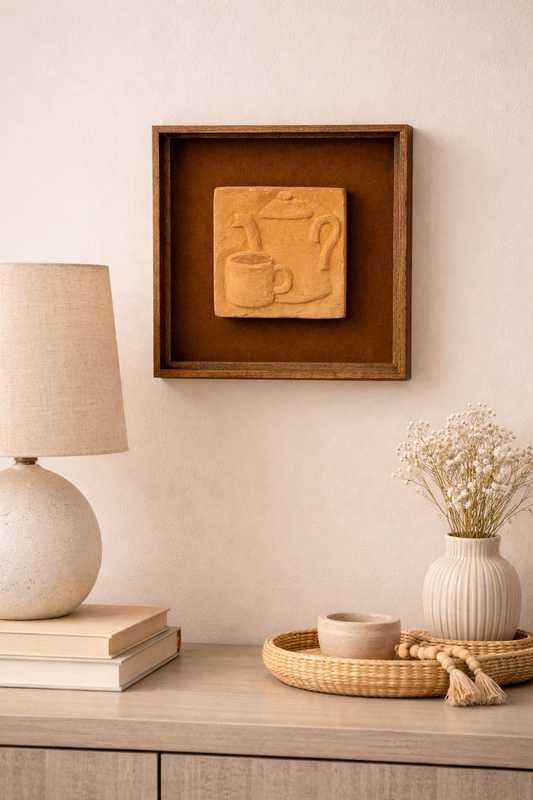 Preço normal R$ 335,00Preço normalPreço unitário / porR$ 335,00Preço promocional R$ 335,00Quadro Bule Charmoso e delicado, o Quadro Bule traz um toque artesanal e acolhedor para a decoração. Com relevo em terracota e moldura em madeira, é perfeito para compor ambientes com estilo e personalidade. Medidas: 22 cm (A) x 22 cm (L) x 4 cm (P) Por se tratar de uma peça com processo artesanal, pode apresentar leves variações de cor, forma e textura, características que garantem sua exclusividade e autenticidade. As fotos dos produtos podem ter pequenas variações de cor comparadas ao produto original. Código: 117686 -