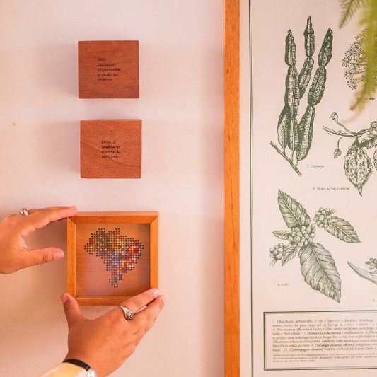 Preço normal R$ 389,00Preço normalPreço unitário / porR$ 389,00Preço promocional R$ 389,00Quadro Ponto-cruz • Brasil Uma peça que transforma memórias em arte. Feito em madeira nobre de cedro, este quadro convida você a bordar o Brasil com suas próprias histórias, onde cada ponto representa caminhos e conexões. Feito em madeira nobre de cedro, possui tampa discreta e pode ser pendurado ou apoiado. O quadro/moldura é entregue sem a customização do bordado, a ser uma experiência de bordado pelo cliente. Acompanha instrução de bordado ilustrado e intuitivo, para qualquer nível de conhecimento em Bordado. Não acompanha linhas e agulha Além de decorativo, é uma experiência criativa única e cheia de significado. Medidas Aproximadas: A:11,5 x P:4 x 12cm As fotos dos produtos podem ter pequenas variações de cor comparadas ao produto original. Código: 857304 -