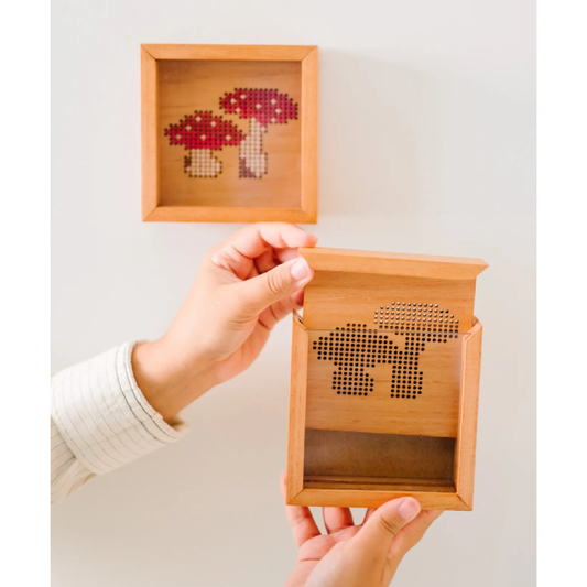 Preço normal R$ 389,00Preço normalPreço unitário / porR$ 389,00Preço promocional R$ 389,00Quadro Ponto-cruz • Cogumelo Delicado e cheio de significado, o quadro bordável Cogumelo celebra a beleza das pequenas coisas da natureza. Símbolo de renovação e magia, transforma o bordado em uma experiência criativa e relaxante. Com design funcional, pode ser pendurado ou apoiado, além de contar com tampa discreta para guardar o bordado ou pequenos objetos. Um toque artesanal e poético para o seu espaço. O quadro/moldura é entregue sem a customização do bordado, a ser uma experiência de bordado pelo cliente. Acompanha instrução de bordado ilustrado e intuitivo, para qualquer nível de conhecimento em Bordado. Não acompanha linhas e agulha Além de decorativo, é uma experiência criativa única e cheia de significado. Medidas Aproximadas: A:11,5 x P:4 x C:12cm As fotos dos produtos podem ter pequenas variações de cor comparadas ao produto original. Código: 709235 -