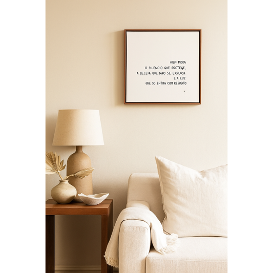 Preço normal R$ 1.350,00Preço normalPreço unitário / porR$ 1.350,00Preço promocional R$ 1.350,00Leve mais poesia e significado para sua decoração com este quadro elegante e minimalista. A frase “Aqui mora o silêncio que protege, a beleza que não se explica e a luz que só entra com respeito” escrita em bordado, convida à reflexão e transforma qualquer espaço em um ambiente de paz e harmonia. Design clean: fundo claro, tipografia delicada e moldura em madeira que valoriza a simplicidade. Medidas Aproximadas: 3cm x 40cm x 40cm As fotos dos produtos podem ter pequenas variações de cor comparadas ao produto original. Código: 404056 -