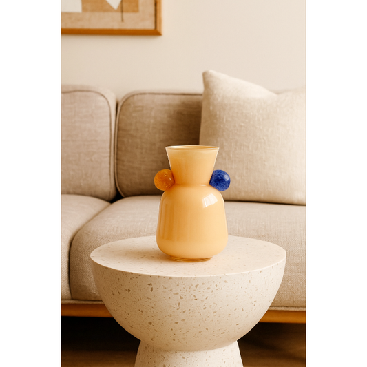 Preço normal R$ 565,00Preço normalPreço unitário / porR$ 565,00Preço promocional R$ 565,00Vaso Soleil Transforme seu ambiente com um toque de arte e originalidade. Este vaso decorativo em vidro bege se destaca pelo design elegante e acabamento artesanal. As esferas em tons vibrantes aplicadas nas laterais trazem um contraste moderno e divertido à peça, tornando-a perfeita para compor uma decoração criativa e sofisticada. Características: Material: Vidro artístico Dimensões: 25 cm (altura) x 16 cm (largura) x 14 cm (profundidade) Cor principal: Bege com detalhes em azul e laranja Design contemporâneo com toque artesanal Ideal para salas, escritórios ou ambientes criativos Uma peça única que alia sofisticação, cor e personalidade à sua decoração. As fotos dos produtos podem ter pequenas variações de cor comparadas ao produto original. Código: LR0041 -