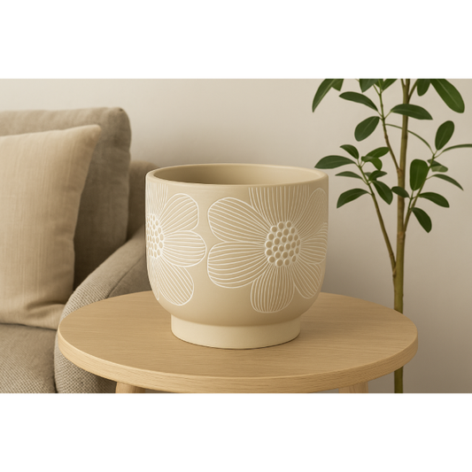 Preço normal R$ 85,00Preço normalPreço unitário / porR$ 85,00Preço promocional R$ 85,00Cachepô Decorativo Cerâmica Flor (Bege) – 13 cm x 13,3 cmO cachepô de cerâmica Flor é a escolha perfeita para quem busca um toque de charme e delicadeza na decoração. Com design em relevo floral e acabamento em tom bege, ele combina facilmente com diversos estilos de ambiente. Ideal para plantas naturais ou artificiais, traz elegância e sofisticação para salas, varandas e escritórios. As fotos dos produtos podem ter pequenas variações de cor comparadas ao produto original. Código: 87423002 -