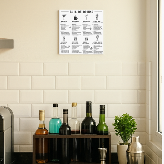 Preço normal R$ 52,00Preço normalPreço unitário / porR$ 52,00Preço promocional R$ 52,00Para decorar o bar ou presentear aqueles que amam um tin tin! Guia de Drinks Azulejo branco estampa preta em cerâmica para decorar a parede ou usar como apoio na mesa. Medidas: 15cm x 15cm x 0,2cm Obs.: o azulejo vai com fita dupla face 3M no verso. As fotos dos produtos podem ter pequenas variações de cor comparadas ao produto original. Código: 20072000 -