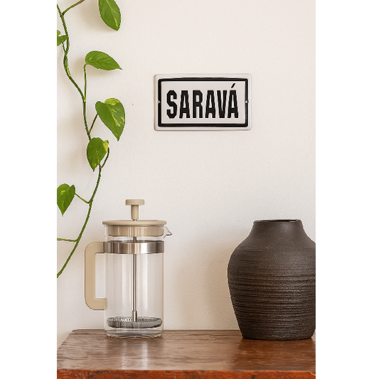 Preço normal R$ 75,00Preço normalPreço unitário / porPreço promocional R$ 75,00Placa vintage esmaltada. Deixa lindo qualquer cantinho da casa! Tamanho: A:5 x C:20cm Material: Metal Cor: Amarelo com Branco As fotos dos produtos podem ter pequenas variações de cor comparadas ao produto original. Código: 0000147 -