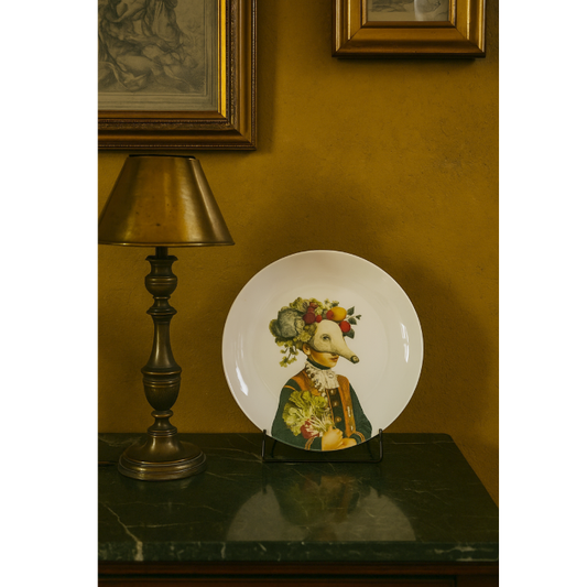 Preço normal R$ 349,00Preço normalPreço unitário / porR$ 349,00Preço promocional R$ 349,00Um convite à imaginação e ao inusitado! O prato Menino Tamanduá, criação do artista Greghi Design, apresenta uma figura humana vestida com trajes clássicos, mas com a cabeça de um tamanduá e adornos de frutas e vegetais. Destaques do produto: Arte exclusiva de Greghi Design Produzido em porcelana de alta qualidade Medidas Aproximadas: 27cm Obs. Os produtos são desenvolvidos em um processo artístico e manual, portanto, cada peça é única! Pequenas alterações são previsíveis no processo. As fotos dos produtos podem ter pequenas variações de cor comparadas ao produto original. Código: 2040 -
