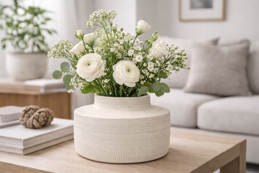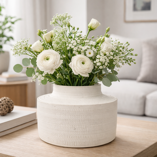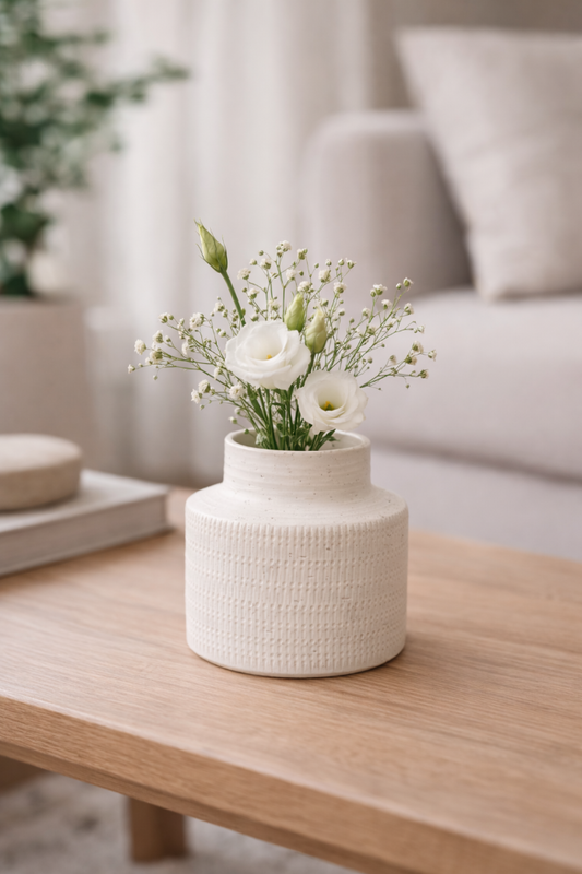 Preço normal R$ 209,00Preço normalPreço unitário / porR$ 209,00Preço promocional R$ 209,00Vaso Decorativo em Cerâmica Texturizada Este vaso em cerâmica possui design orgânico e acabamento texturizado, ideal para compor a decoração com elegância e leveza. Versátil, pode ser utilizado com flores naturais ou secas, valorizando ambientes como salas, aparadores, mesas e estantes. Uma peça atemporal que traz charme e sofisticação para diferentes estilos de decoração. Material: Cerâmica Cor: Off-white Medidas aproximadas: 18 cm (A) × 10 cm (L) Por se tratar de um produto artesanal, podem ocorrer pequenas variações de cor, textura e acabamento, tornando cada peça única. As fotos dos produtos podem ter pequenas variações de cor comparadas ao produto original. Código:77627 -