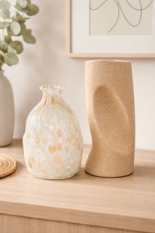 Preço normal R$ 215,00Preço normalPreço unitário / porR$ 215,00Preço promocional R$ 215,00Vaso Decorativo em Cerâmica Artesanal Vaso decorativo produzido em cerâmica, com acabamento fosco e textura suave ao toque. Apresenta design contemporâneo com formato orgânico e abertura assimétrica, que confere personalidade e um visual escultural à peça. Sua coloração em tons neutros de bege claro com leve nuance terrosa traz aconchego e elegância, sendo ideal para compor ambientes modernos, minimalistas ou naturais. Pode ser utilizado com flores secas, galhos ou como peça decorativa isolada. Dimensões: Material: CerâmicaCor: Bege claro com tons terrosos suaves As fotos dos produtos podem ter pequenas variações de cor comparadas ao produto original. Código:18510 -