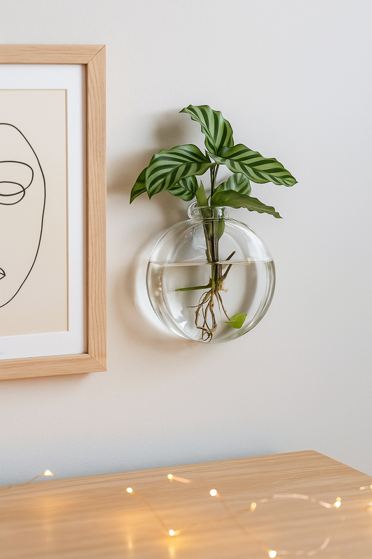 Esgotado EsgotadoVaso de Parede Bolacha de VidroPreço normal R$ 125,00Preço normalPreço unitário / porR$ 125,00Preço promocional R$ 125,00Vaso de parede Bolacha em vidro para hidroponia, folhagens ou flor de corte. Material: vidro de borossilicato Tamanho Aproximadamente: A: 16cm x D: 15 *Não acompanha gancho *As plantas não acompanham o produto As fotos dos produtos podem ter pequenas variações de cor comparadas ao produto original. Código: 14701Esgotado