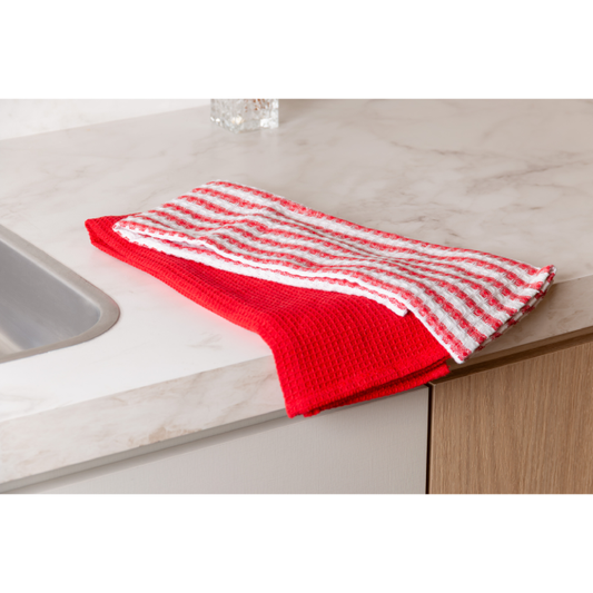 Preço normal R$ 39,00Preço normalPreço unitário / porR$ 39,00Preço promocional R$ 39,00Conjunto 2 Panos de Prato Verona 60x40cm – Vermelho e BrancoConjunto com 2 panos de prato produzidos em 70% algodão reciclado e 30% poliéster, oferecendo boa absorção, resistência e durabilidade. O conjunto inclui 1 pano vermelho liso e 1 pano branco com estampa listrada em vermelho, ideal para o uso diário na cozinha, unindo praticidade, estilo e sustentabilidade. Medidas: 60cm x 40cm (cada peça) As fotos dos produtos podem ter pequenas variações de cor comparadas ao produto original. Código: 222122 -