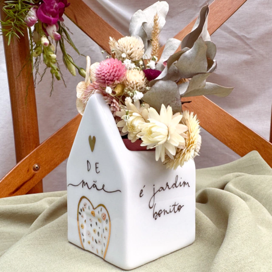 Mini Vaso Casinha – Coração de Mãe é Jardim Bonito