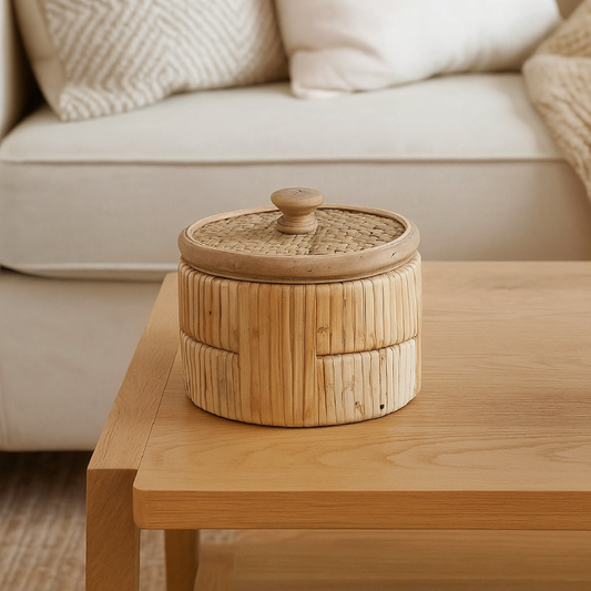 Preço normal R$ 175,00Preço normalPreço unitário / porR$ 175,00Preço promocional R$ 175,00Este pote decorativo apresenta base preta com textura entrelaçada com couro sintetico e tampa em madeira natural com pegador arredondado, unindo charme rústico ao design contemporâneo. Perfeito para organizar pequenos itens com estilo ou compor a decoração de ambientes como sala, cozinha, banheiro ou escritório. Material: Madeira Medidas: 15cm x 15cm x 12 Cor: Preto As fotos dos produtos podem ter pequenas variações de cor comparadas ao produto original. Código: FM0327-2 -
