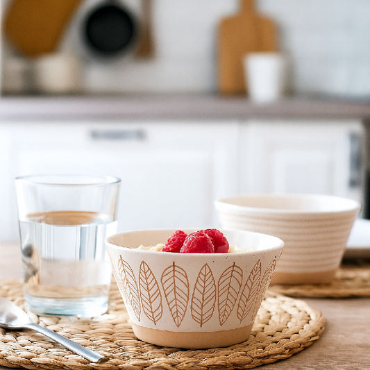 Preço normal R$ 35,00Preço normalPreço unitário / porR$ 45,00Preço promocional R$ 35,00Bowl de cerâmica com acabamento esmaltado e detalhes em relevo de folhas. Ideal para servir sopas, saladas, frutas ou compor uma mesa posta charmosa. Design rústico e elegante, combina com qualquer estilo de decoração. Material: Cerâmica Cor: Off whate com detalhes bege Medidas aproximadas : 8x 13cm As fotos dos produtos podem ter pequenas variações de cor comparadas ao produto original. Código: DPU06242Esgotado -