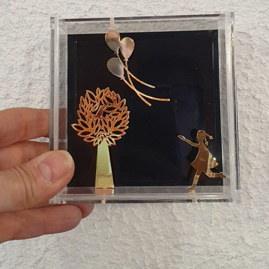 Preço normal R$ 335,00Preço normalPreço unitário / porR$ 395,00Preço promocional R$ 335,00Mini box Menina no parque é uma peça desenvolvida pela designer Paty Fernandes e retrata cenas do cotidiano que merecem ser eternizadas! Produzida numa caixa de acrílico com detalhes em metal com banho de ouro 18k. Pode ser usada tanto na parede com numa estante. Medidas Aproximadas: 10x10x4cm As fotos dos produtos podem ter pequenas variações de cor comparadas ao produto original. Código: 001421Esgotado -