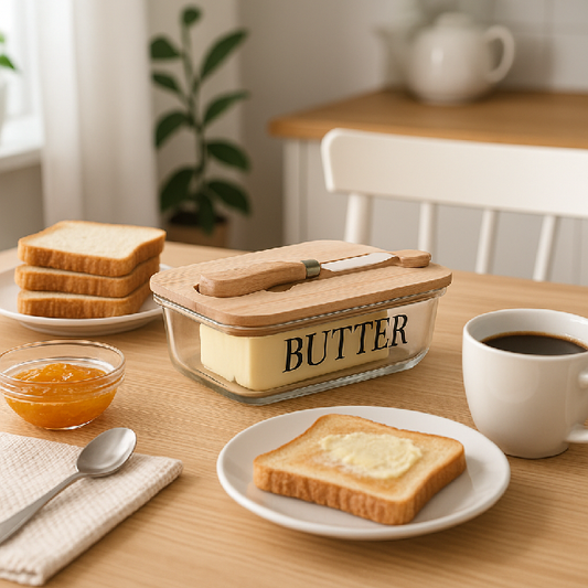 Preço normal R$ 74,25Preço normalPreço unitário / porR$ 89,00Preço promocional R$ 74,25A Manteigueira de Vidro com Espátula e Tampa de Bambu Basic é perfeita para quem aprecia um toque contemporâneo e sustentável, além de ser fácil de limpar e resistente. Ideal para manter sua manteiga sempre à mão, com muito mais charme e organização! Seu design clean e moderno combina o charme do vidro com a rusticidade do bambu, criando uma peça elegante e funcional para sua cozinha. A tampa de bambu mantém a manteiga fresca e protegida, enquanto a espátula de bambu inclusa facilita o uso, proporcionando maior higiene e comodidade ao servir. Contem: 1 Manteigueira ( 15 x 11cm X 5cm) 1 Espátula ( 12,5cm) As fotos dos produtos podem ter pequenas variações de cor comparadas ao produto original. Código: 20988Promoção -