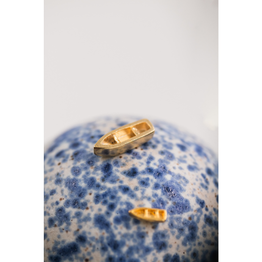 Preço normal R$ 849,00Preço normalPreço unitário / porR$ 849,00Preço promocional R$ 849,00Mundinho chão de água é uma peça desenvolvida pelo Studio Dalzotto, feita em cerâmica esmaltada de alta temperatura com granulação azul sobre fundo branco e com detalhes em latão banhado a ouro, marca do artista, que traz brilho e delicadeza a escultura. Fica lindo numa estante e é uma peça cheia de simbolismo. Diâmetro aproximado: 6 cm Altura aproximada: 7 cm Uma criação que evoca a leveza e a profundidade dos caminhos desenhados pela água. As fotos dos produtos podem ter pequenas variações de cor comparadas ao produto original. Código: CAP0010 -