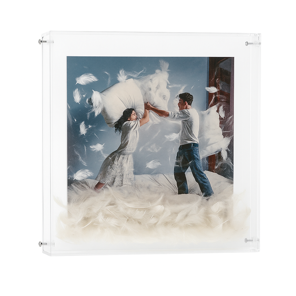 Quadro Acrílico Guerra de Travesseiros 25x25 - Greghi Desing