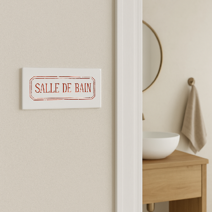 Este com a frase "Salle de Bain" (Banheiro) para decorar a entrada ou a parede do lavabo e do banheiro.