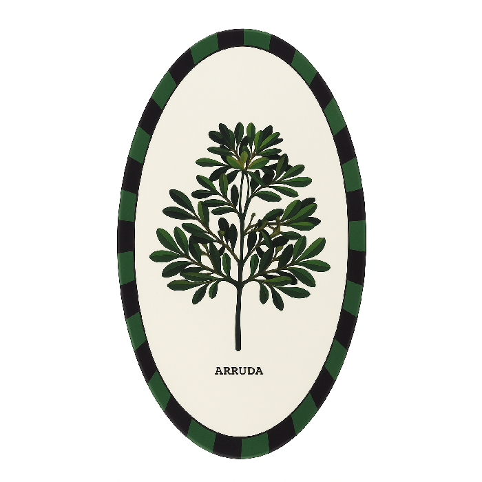 O Azulejo Oval Arruda, criado pelo artista Greghi, é uma obra que captura a essência mística e simbólica da arruda, uma planta conhecida por suas propriedades protetoras e curativas. Com formato oval, o azulejo traz uma interpretação artística única da arruda, com suas folhas delicadas e traços finos que se entrelaçam de maneira harmoniosa. O design do azulejo transmite uma sensação de equilíbrio e proteção, refletindo a ligação profunda da planta com rituais e crenças populares.