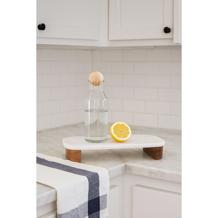 Bandeja em Mármore Noir com pé de madeira, tem design sofisticado e moderno. Ideal para ser usado como apoio em aparador ou no cantinho do café e porque não no banheiro?