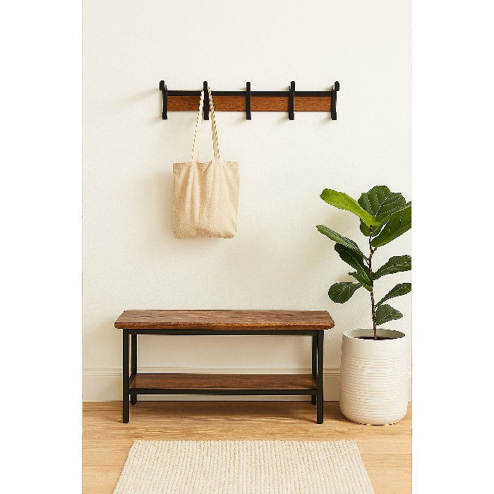 Cabideiro de parede é peça funcional e estilosa, ideal para otimizar espaços com elegância.