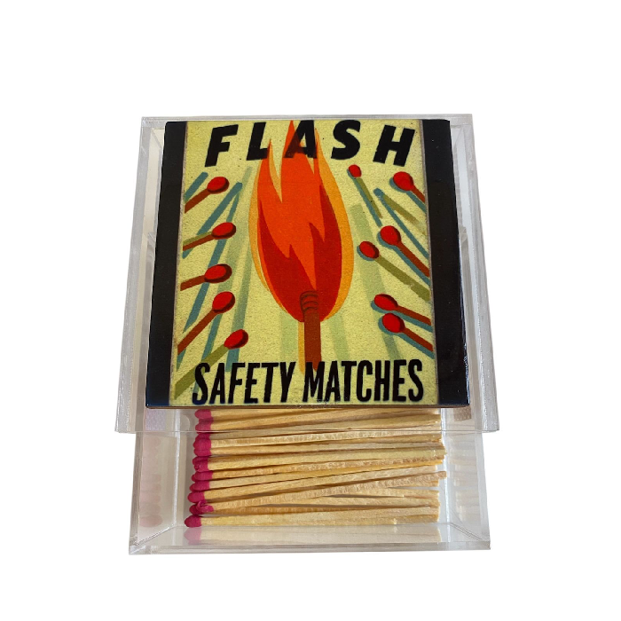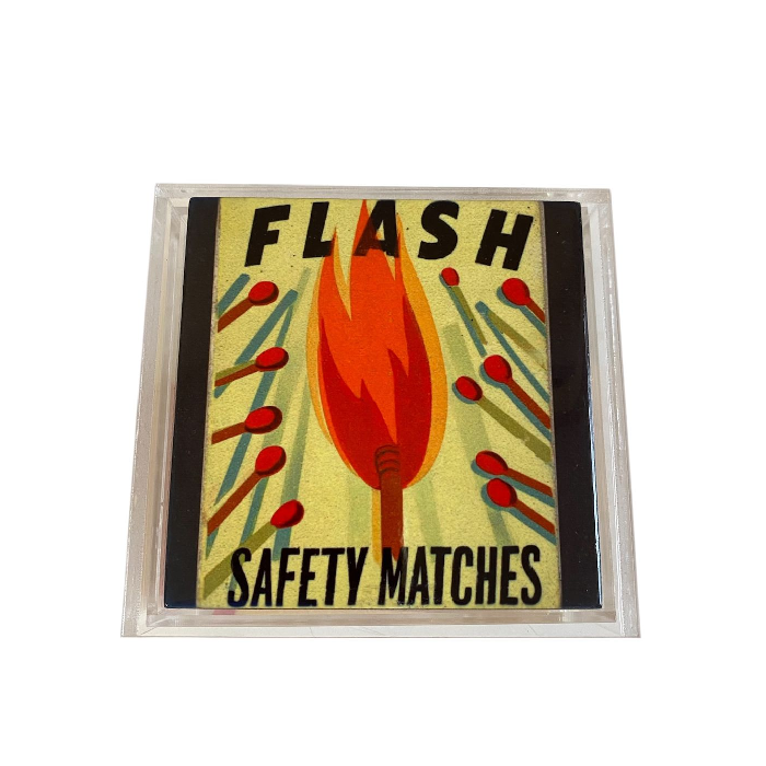 Caixa de fósforos em acrílico transparente, com azulejo decorativo colado na parte superior, unindo arte e funcionalidade. A peça abre como uma caixa de fósforos tradicional, sendo ideal para compor a decoração com charme e estilo.