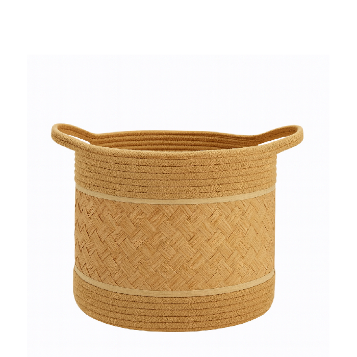 Versátil e elegante, este cesto é ideal para decorar e organizar. Produzido em fibra sintética resistente, com acabamento em corda bege, traz charme e praticidade para qualquer ambiente. Perfeito para sala, quarto, banheiro ou varanda.
