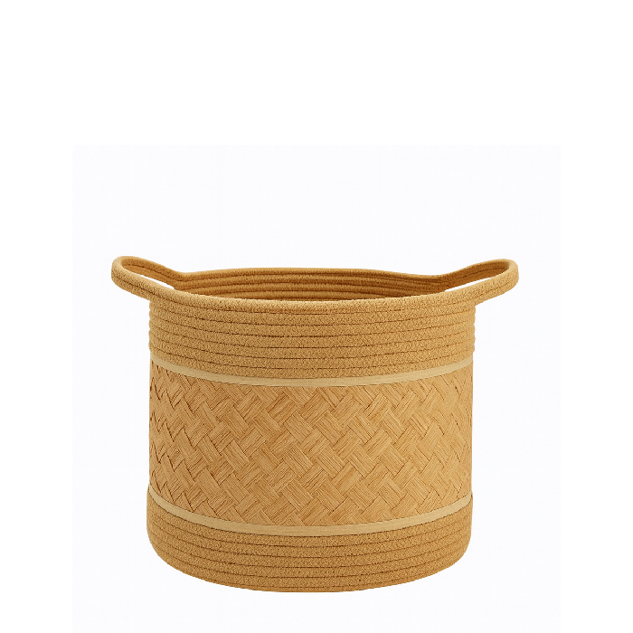 Versátil e elegante, este cesto é ideal para decorar e organizar. Produzido em fibra sintética resistente, com acabamento em corda bege, traz charme e praticidade para qualquer ambiente. Perfeito para sala, quarto, banheiro ou varanda.