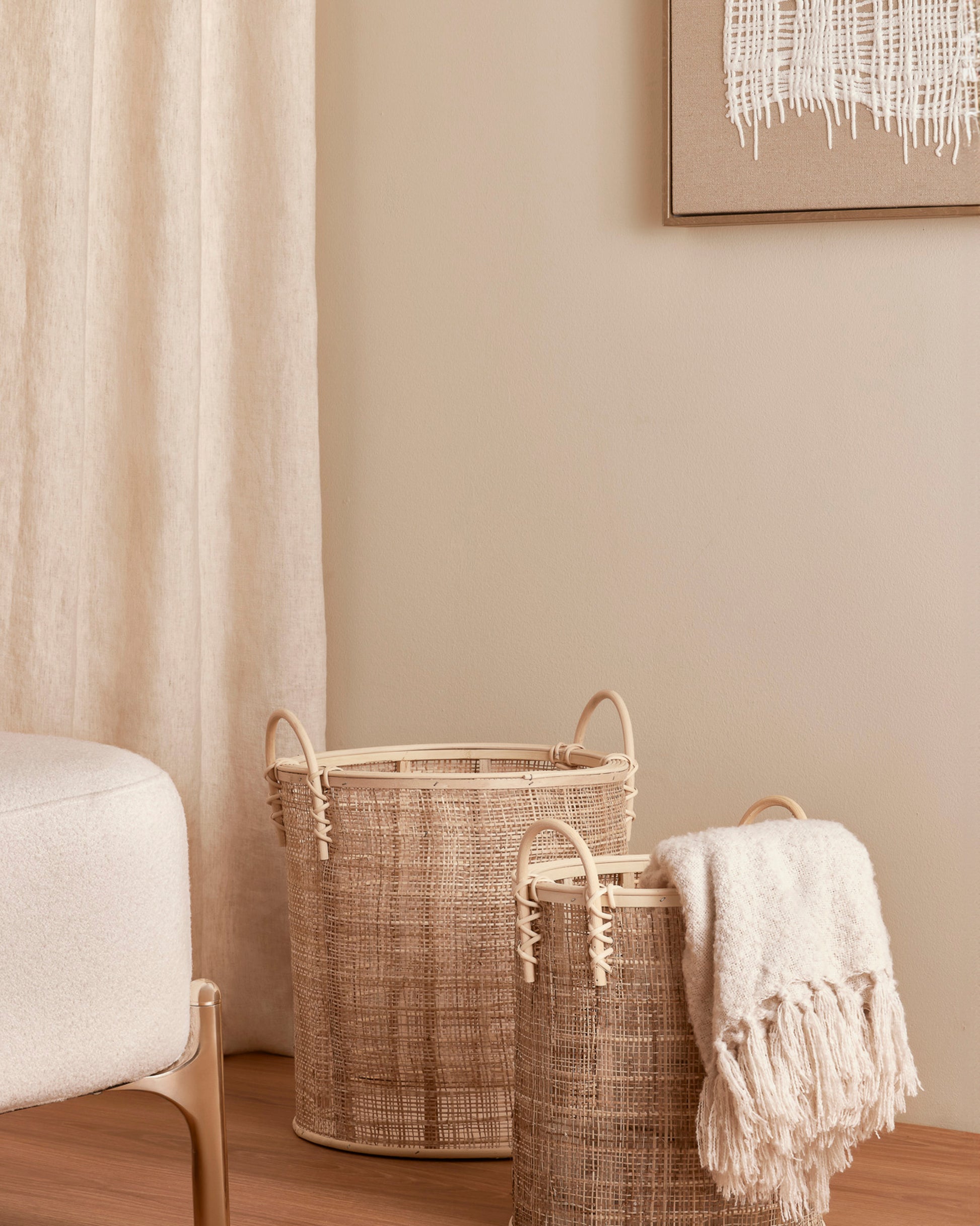 Este é um cesto de fibra natural que pode ser usado para armazenar objetos ou para decorar sua casa, ele é prático e versátil, podendo ser usado em diversos ambientes. Produzido com materiais naturais, é uma opção sustentável e trazendo charme e organização para o seu lar.