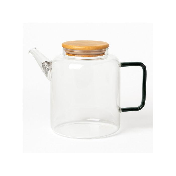 Feita em vidro resistente ao calor, possui design moderno com tampa de bambu e alça confortável, unindo beleza e durabilidade.