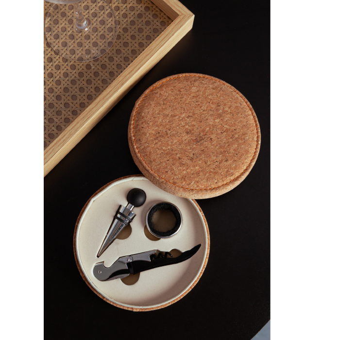 Acompanha estojo redondo com acabamento de cortiça com acabamento sofisticado.
