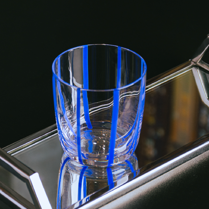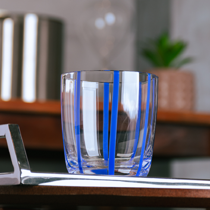 Copo Azura em vidro azul design moderno e elegante para o dia a dia.