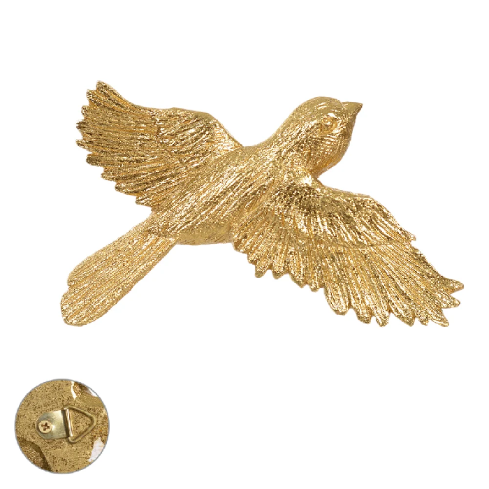 Escultura de Parede Pássaro em Poliresina – Dourado