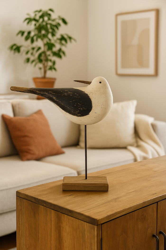A Escultura de Pássaro em Madeira G é uma peça artesanal que traz aconchego e elegância para a decoração.