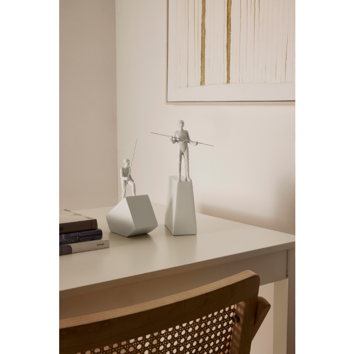 Minimalista e cheia de significado, essa escultura representa uma figura humana equilibrando uma haste, remetendo à leveza, foco e equilíbrio. Feita em polirresina com acabamento branco fosco, ela combina perfeitamente com ambientes modernos, sofisticados e artísticos.